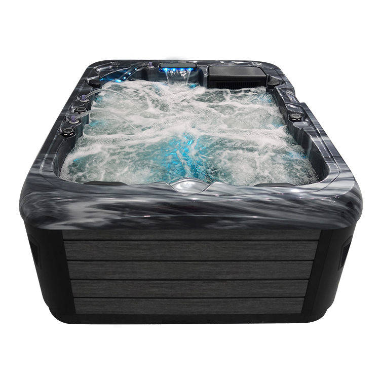 JW-2203 This is an outdoor acrylic massage bathtub measuring 2.1m * 1.58m, which comes with 1 seat and 2 lounges and can accommodate up to three people. It is equipped with massage jets, fountains, waterfalls and other functions. You can adjust them according to your needs through the control panel on the bathtub, and enjoy other massage experiences while taking a bath.