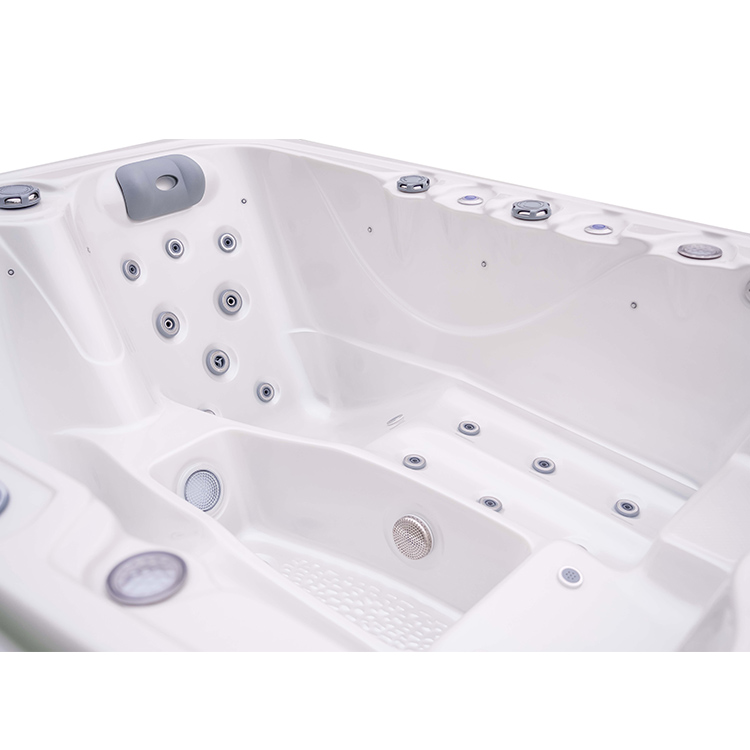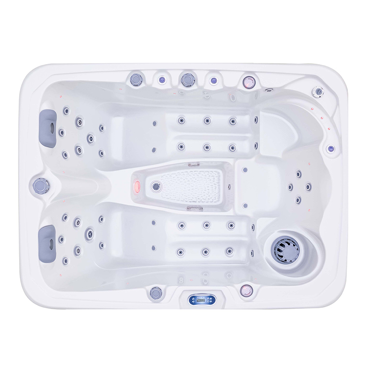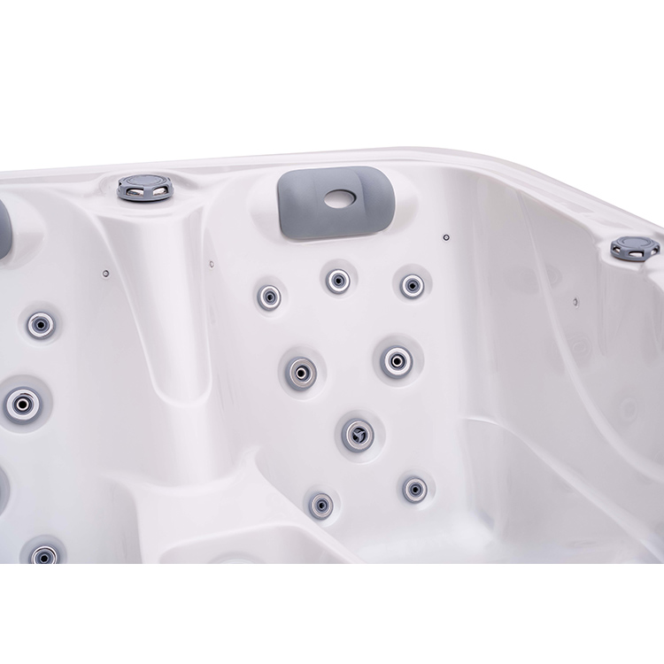 JW-2220 This is an outdoor acrylic massage bathtub measuring 2.1m * 1.58m, which comes with 1 seat and 2 lounges and can accommodate up to three people. It is equipped with massage jets, fountains, waterfalls and other functions. You can adjust them according to your needs through the control panel on the bathtub, and enjoy other massage experiences while taking a bath.