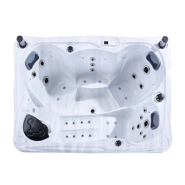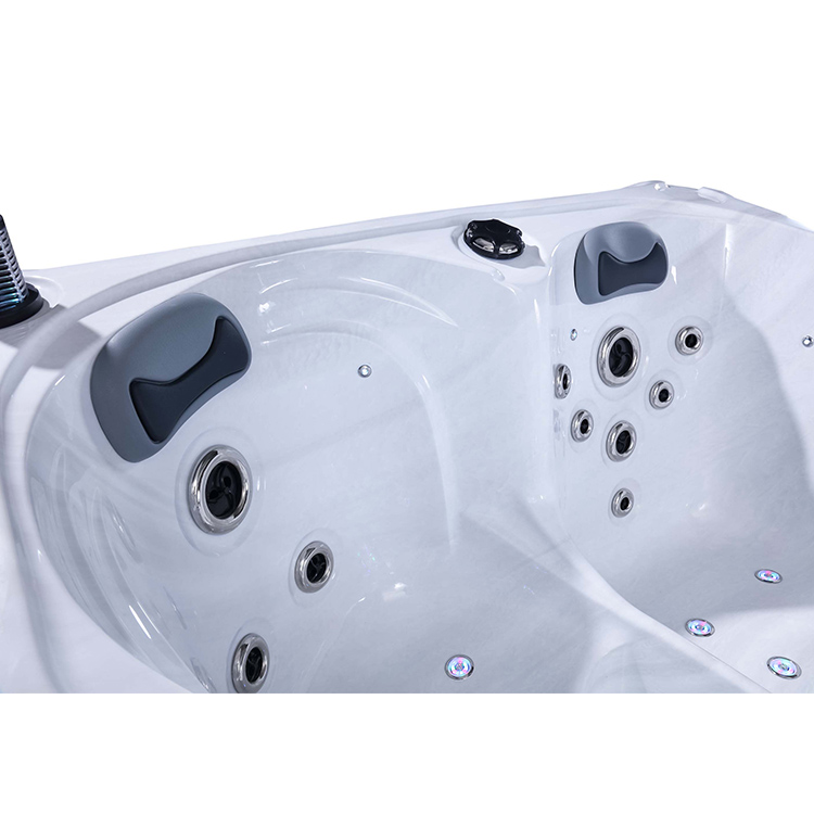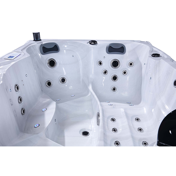 JW-2219 This is an outdoor acrylic massage bathtub measuring 2.2m * 1.6m, which comes with 3 seats and 1 lounge and can accommodate up to four people. It is equipped with massage jets, speaker and other functions. You can adjust them according to your needs through the control panel on the bathtub, and enjoy other massage experiences while taking a bath.