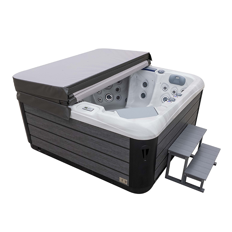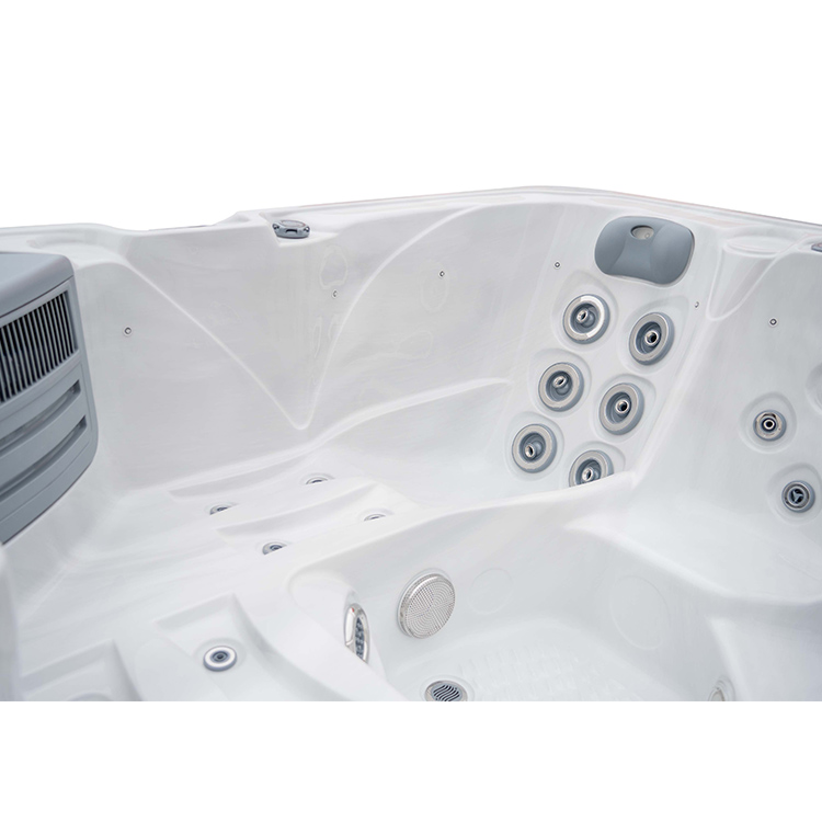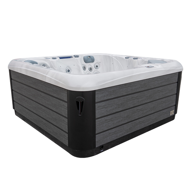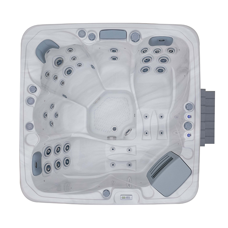 JW-2204 This is an outdoor acrylic massage bathtub measuring 2m * 2m, which comes with 3 seats and 2 lounges and can accommodate up to five people. It is equipped with massage jets, LED cup holder and other functions. You can adjust them according to your needs through the control panel on the bathtub, and enjoy other massage experiences while taking a bath.