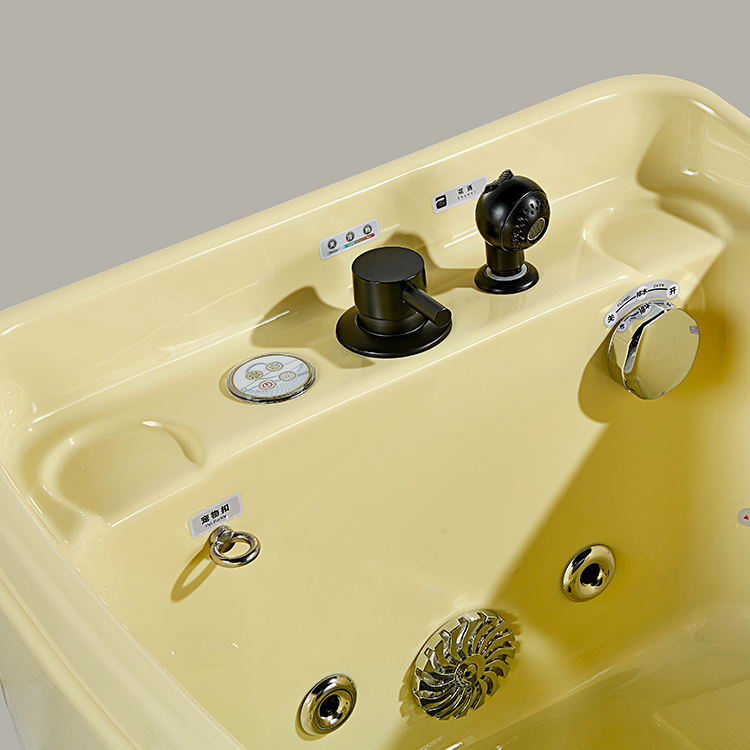 JW-6021 This is acrylic pet bathtub measuring 0.7m * 0.6m, It is equipped with faucet, drainage, pet hook and other functions. You can adjust them according to your needs through the control panel on the bathtub, which can make it more convenient to and efficient for you to take care of your pets.