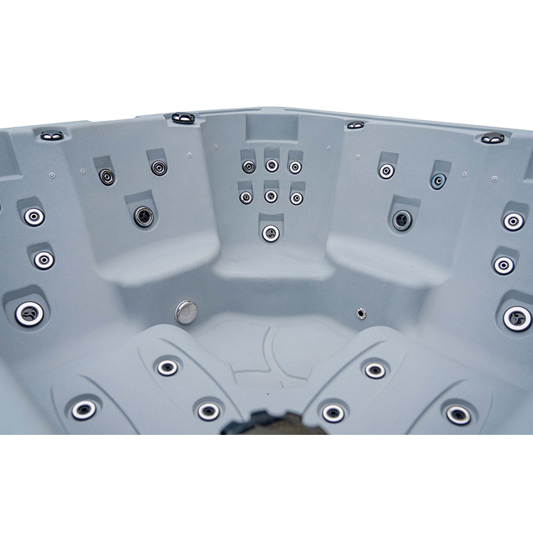 JW-2228 This is an outdoor rotomolding massage bathtub measuring 2m * 2m, it’s our new technical spa ,which comes with 3 seats and 2 lounges and can accommodate up to five people. It is equipped with massage jets, speakers and other functions. You can adjust them according to your needs through the control panel on the bathtub, and enjoy other massage experiences while taking a bath.