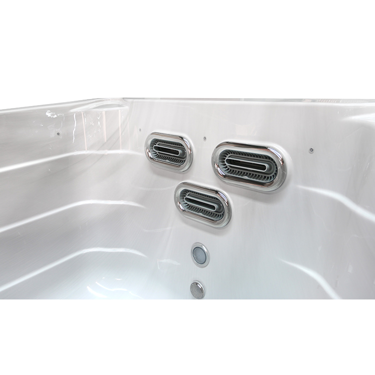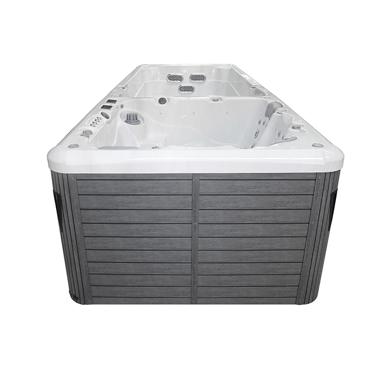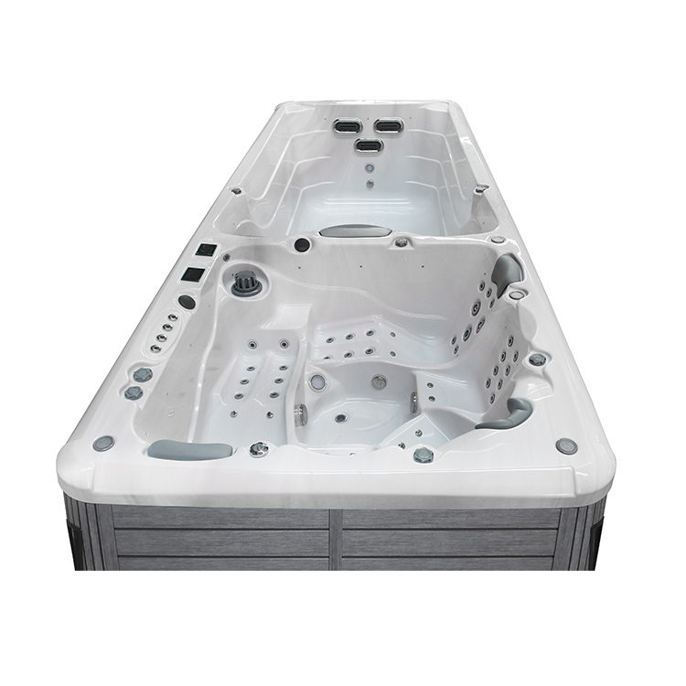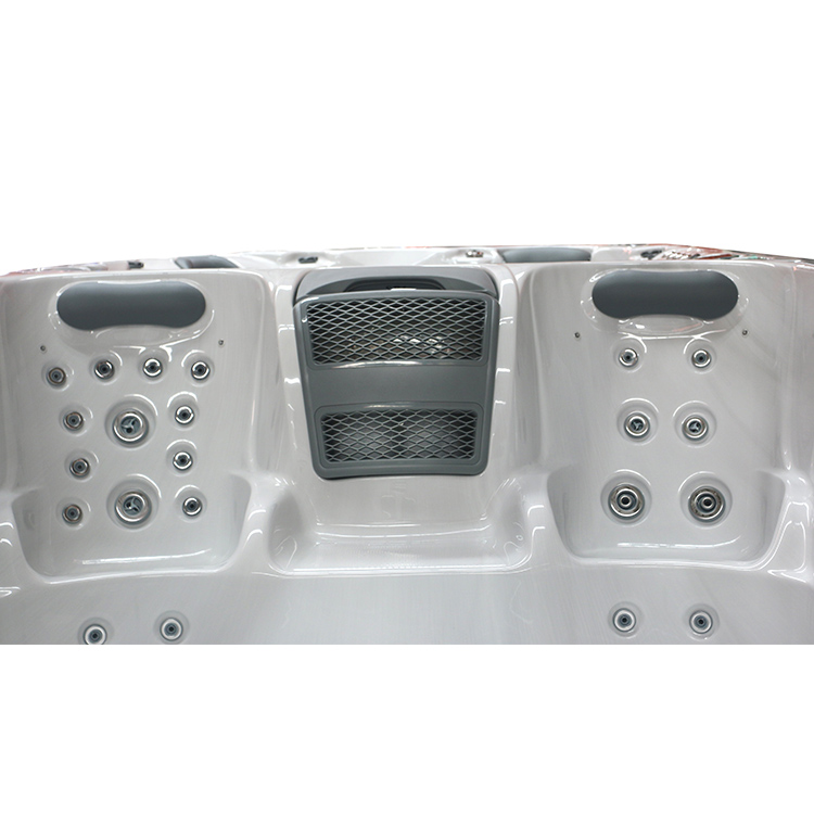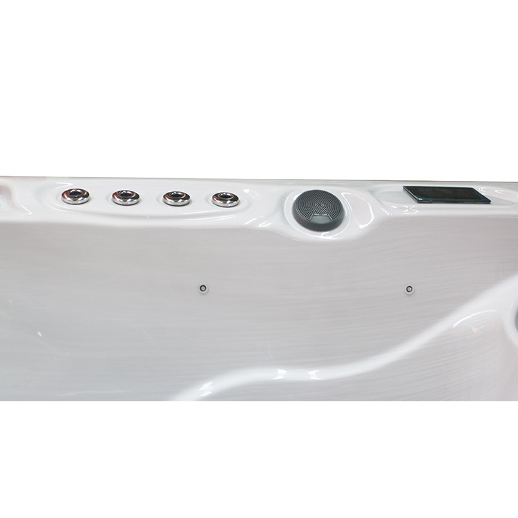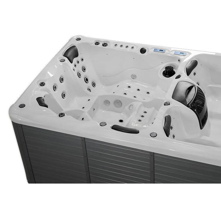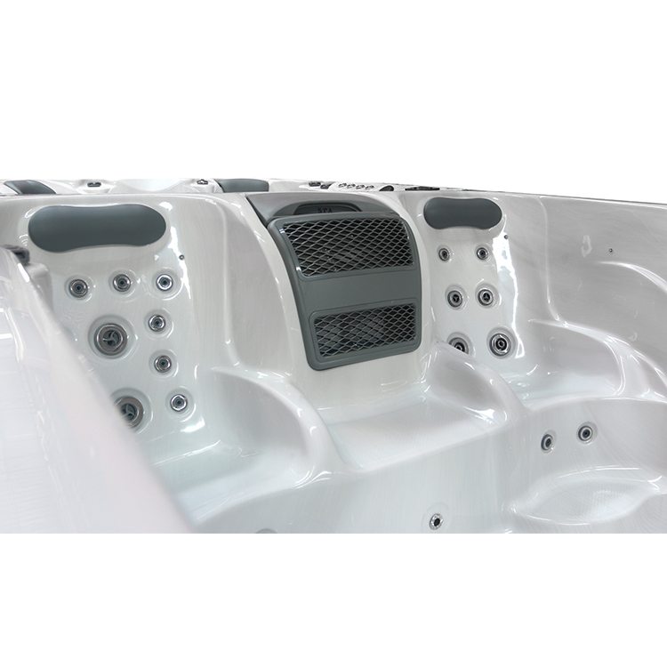 JW-2209 This is an outdoor acrylic massage swimming pool measuring 5.8m * 2.2m, which comes with 3 seats ,2 lounge and a large pool and can accommodate up to 8-12 people. It is equipped with massage jets, fountains, cup holder and other functions. You can adjust them according to your needs through the control panel on the bathtub, and enjoy other massage experiences while taking a bath.