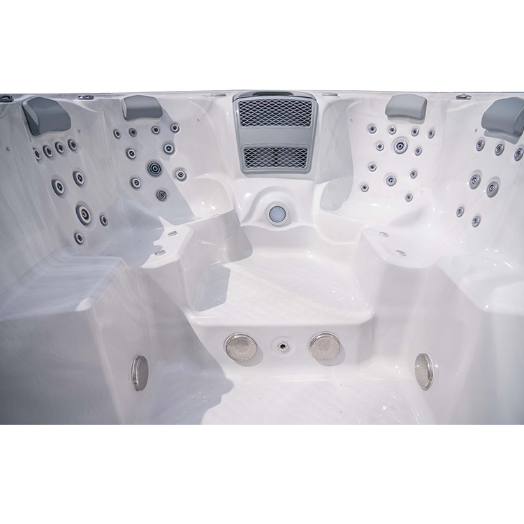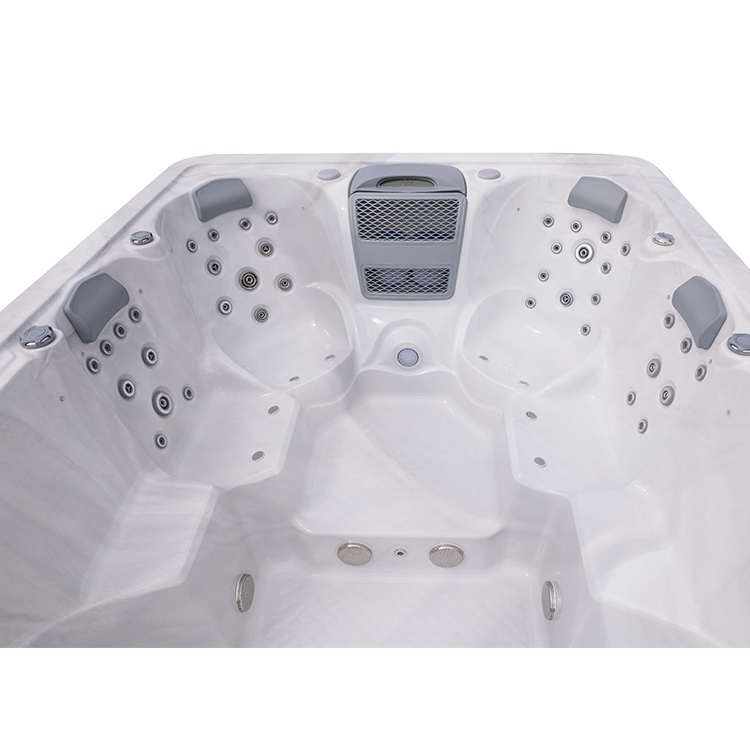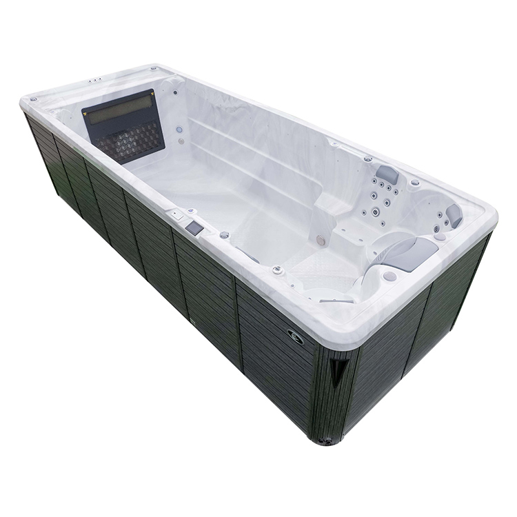 JW-2217 This is an outdoor acrylic massage swimming pool measuring 5.8m * 2.2m, which comes with 4 seats and a large pool and can accommodate up to 8 people. It is equipped with massage jets, fountains, cup holder and other functions. You can adjust them according to your needs through the control panel on the bathtub, and enjoy other massage experiences while taking a bath.